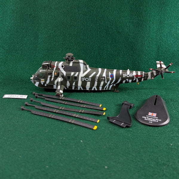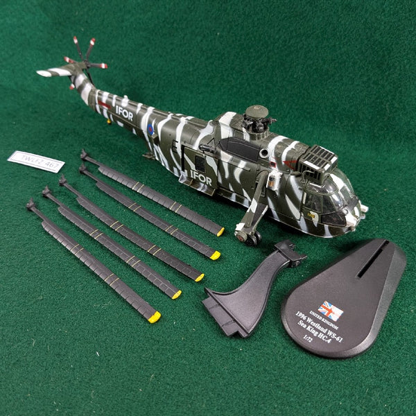 Diecast model of the 1996 Westland WS-61 Sea King HC4 Military Helicopter is a detailed and accurate replica of the iconic military helicopter. . Pre-painted, it is great for display or wargaming. A stand is included. Rotor blades push on, they are detached for shipping.