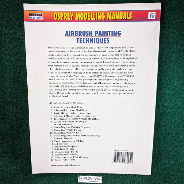 This book is designed to impart the techniques of using this effective tool quickly and easily. All three types of airbrush are examined and explained in simple terms. The title also boasts an excellent section on actually using the airbrush, and studies in depth the painting of four different miniatures. Clear photographs are taken of the painting process on each different model, showing all sorts of exciting techniques. Methods of lightening and darkening, representing camouflage and weathering and mixing exactly the right color are all explained. A book that will suit both complete beginners and those wanting to get more out of their airbrush.