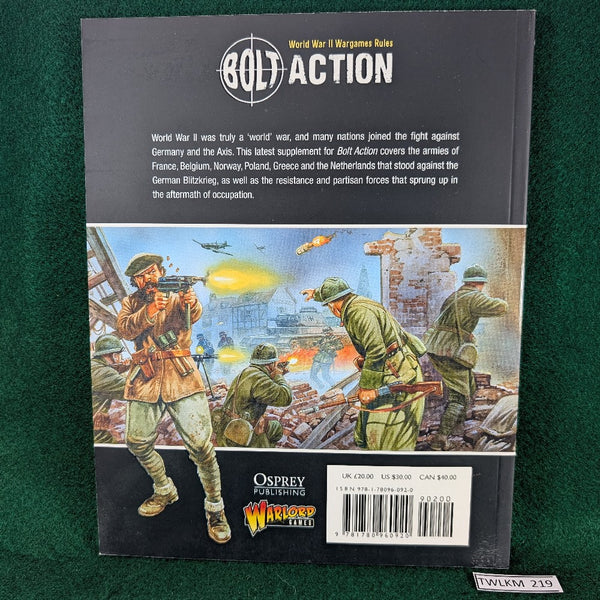 World War II was truly a world war, and many nations joined the fight against Germany and the Axis. This supplement for Bolt Action covers the armies of France, Poland, Greece, Norway, Holland and Belgium that stood against the German Blitzkrieg, as well as the resistance forces that sprung up in the aftermath of occupation.