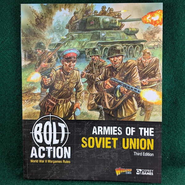 This supplement for Bolt Action: Third Edition brings the full might of the Red Army to the WWII tabletop. Stand against the Germans during Operation Barbarossa, engage in the fierce street-fighting of Stalingrad, and finally take the fight right into the heart of the Reich itself, Berlin. Contained within are all the special rules, unit profiles and force selection guides players need to build a Bolt Action Soviet force. Field platoons of everything from the humble conscript to the ZiS-3 divisional gun and the mighty IS-2 heavy tank.