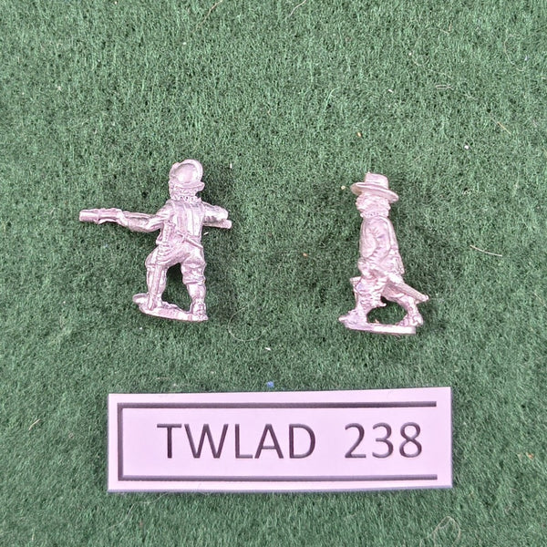 Pack of 2 15mm miniatures, either Spanish or English artillerymen of the 16th Century in assorted poses.