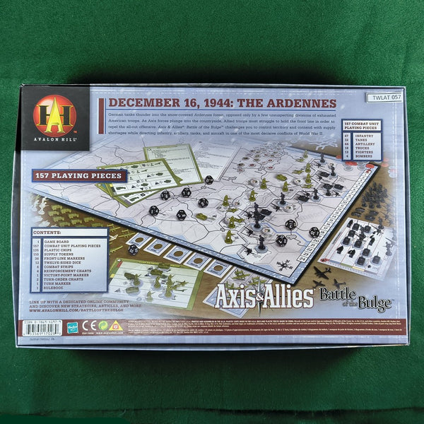 German tanks thunder into the snow-covered Ardennes forest, opposed only by a few unsuspecting divisions of exhausted American troops. As Axis forces plunge into the countryside, Allied troops must struggle to hold the front line in order to repel the all-out offensive. Axis & Allies: Battle of the Bulge challenges you to control territory and contend with supply shortages, while directing infantry, artillery, tanks, and aircraft in one of the most decisive conflicts of World War II.