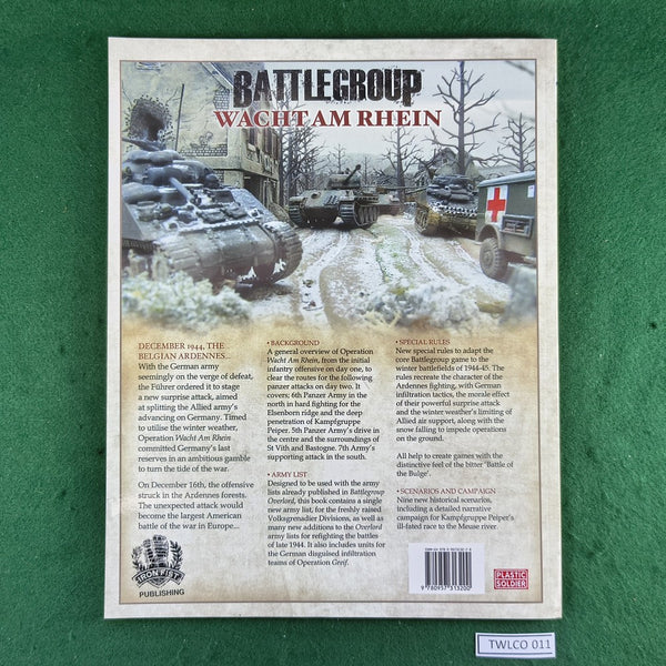 Please note you need the Battlegroup Overlord campaign supplement and the mini ruleset to play Wacht am Rhein.