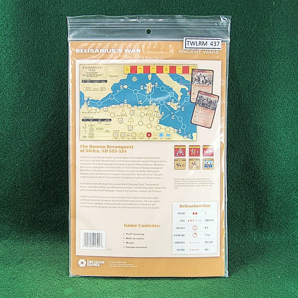 In AD 533, Eastern Roman Emperor Justinian began the attempted reconquest of the territories of the fallen Western Empire from the barbarians who overran it the prior century. Leading the first of those campaigns was the great general, Flavius Belisarius. Belisarius’s War is a two-player game of the Vandal War, in which the Eastern Romans reconquered North Africa. One player commands the Romans, the other the Vandals. Both players maneuver units representing elite regulars, tribal warbands, fleets and militia. The point-to-point map covers North Africa as well as the islands of the Western Mediterranean.