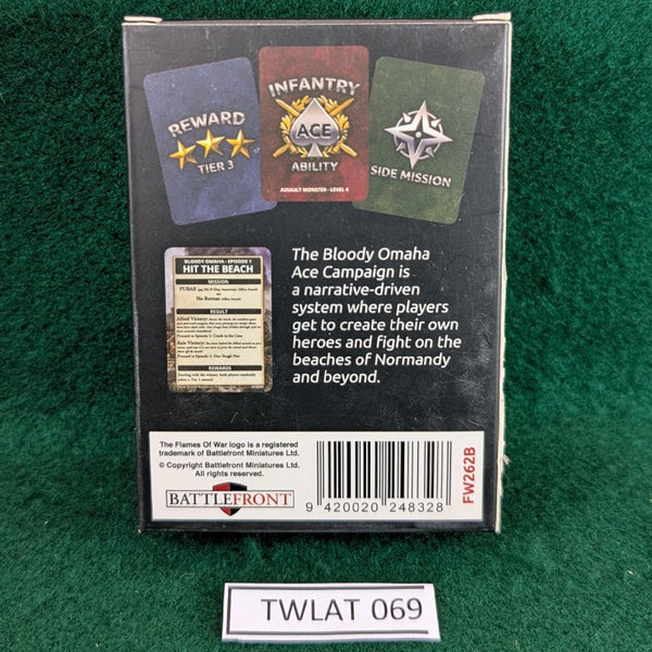 Bloody Omaha is the first in a series of Ace Campaigns, a narrative-driven system of Flames Of War battles. Ace Campaigns are extremely flexible in allowing players to tailor their campaign to fit their playgroups needs. There are three different modes that you can play the campaign in: Story Mode, Extended Mode, and Aces Mode. Story mode is your shortest campaign that only uses the Story and Reward cards, while Extended allows you to play longer campaigns by adding in side missions. The Aces mode can be used with Story Mode or Extended Mode an allows players to create their own unique commander with special abilities that will give them an edge during the course of the campaign.
