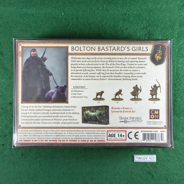 The Bolton Bastard’s Girls Unit Box for the A Song of Ice and Fire: Tabletop Miniatures Game allows Commanders to field this squad as part of their force. Being a Neutral unit, any house can hire them on. Lightly armored, these swift hunters can easily take down enemies with a combination of arrows and teeth.