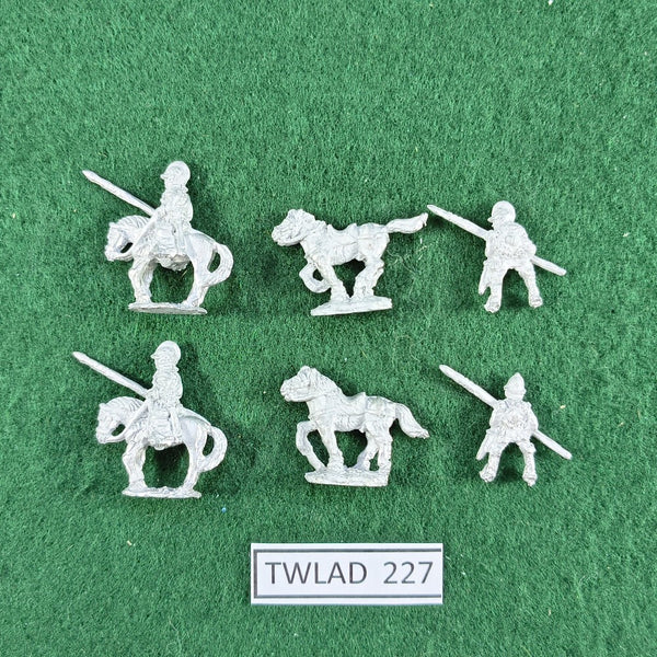 Pack of 4 miniatures (2 rider, 2 horse, 2 horse with rider) depicting Border Lancers wearing helmets. 15mm scale.