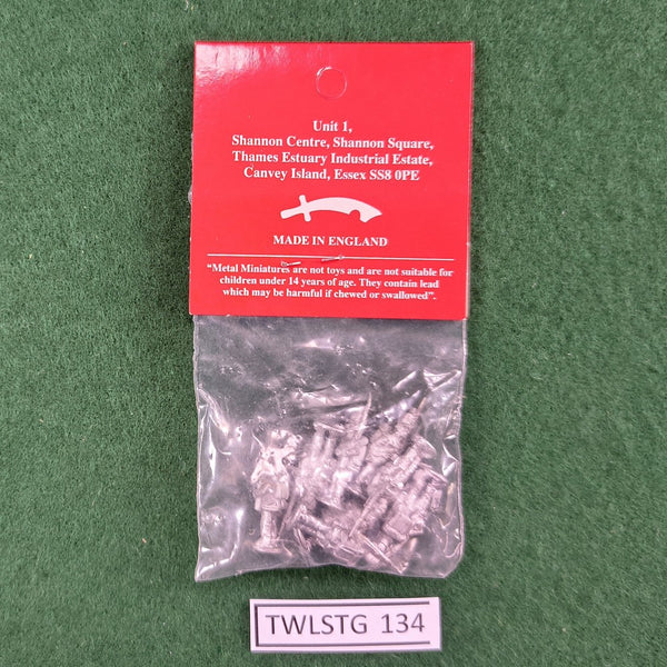 Pack of 8 miniatures depicting Napoleonic British Grenadier or Light Company troops, standing at attention. 15mm scale.