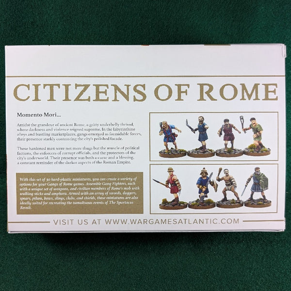 With this set of 30 hard-plastic miniatures, you can create a variety of options for your Gangs of Rome games. Assemble Gang Fighters, each with a unique set of weapons, and civilian members of Rome's mob with walking sticks and amphora. Armed with an array of swords, daggers, spears, pilum, bows, slings, clubs, and shields, these miniatures are also ideally suited for recreating the tumultuous events of The Spartacus Revolt.