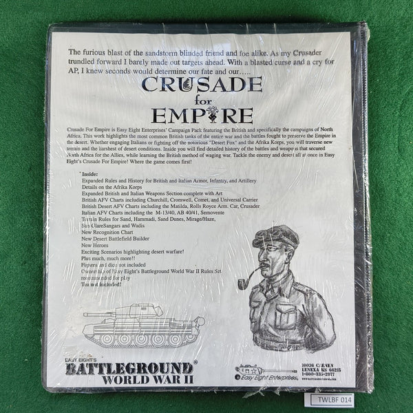 Crusade for Empire is Easy Eight Enterprises’ campaign pack featuring the British and specifically the campaigns of North Africa. This work highlights the most common British tanks of the entire war and the battles fought to preserve the Empire in the desert. Whether engaging Italians or fighting off the notorious “Desert Fox” and the Afrika Korps, you will traverse new terrain and the harshest of desert conditions. Inside you will find detailed history of the battles and weapons that secured North Africa for the Allies, while learning the British method of waging war. Tackle the enemy and desert all at once in Easy Eight’s Crusade for Empire! Where the game comes first!