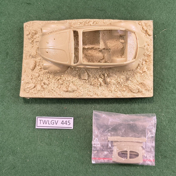 Resin cast of a destroyed German Car (Volkswagen), in 35mm scale.