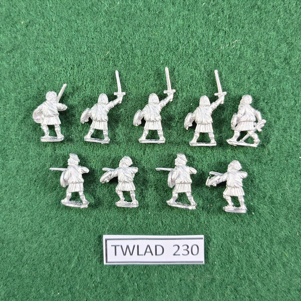 Pack of 9 miniatures depicting Highlanders with sword and shield, from the English Civil War.