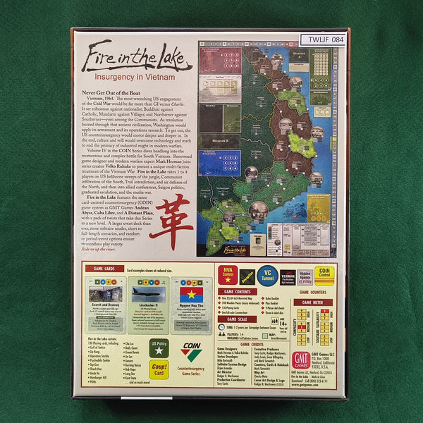 Fire in the Lake features the same card-assisted counterinsurgency game system as GMT's Andean Abyss, Cuba Libre, and A Distant Plain, with twists that take the Series to another level.