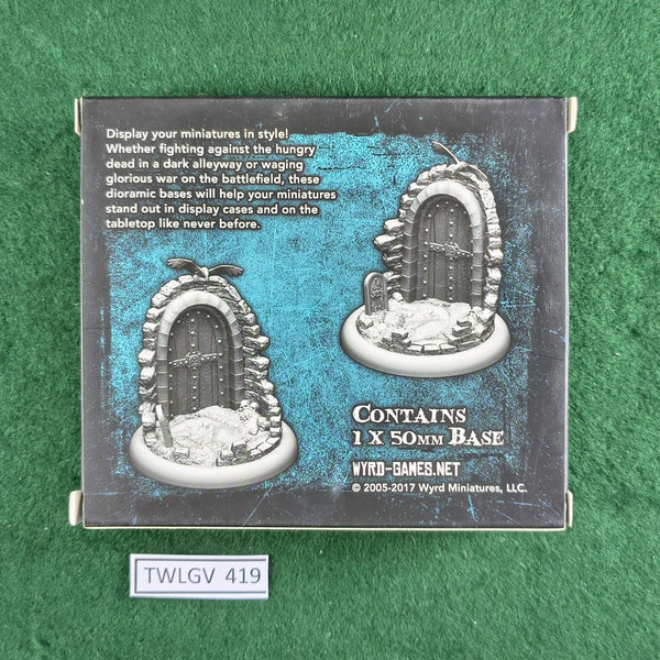Display your miniatures in style! Whether fighting against the hungry dead in a dark alleyway or waging glorious war on the battlefield, these dioramic bases will help your miniatures stand out in the display cases and on the tabletop like never before. Contains one 50mm base and themed insert.