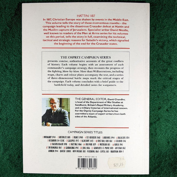 In 1187, Christian Europe was shaken by events in the Middle East. This volume tells the story of those momentous months the campaign leading to the Muslim capture of Jerusalem after the disastrous Crusader defeat at Hattin where, in a two day running battle on the waterless plateau between Saffuriya and Tiberias, beneath a burning sun, Saladin's troops destroyed the Christian army. The disaster at Hattin resulted in the collapse of the kingdom of Jerusalem and sparked off the Third Crusade under Richard I 'Coeur de Lion'. This book examines Hattin in detail and looks at the consequences of the battle.