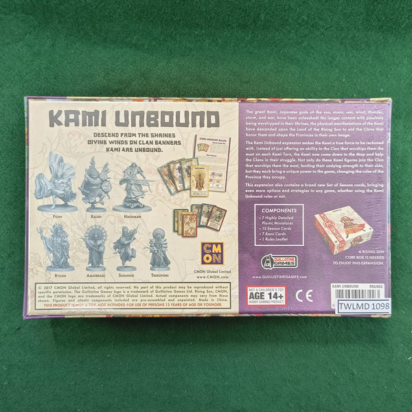 Kami Unbound is a new ruleset which makes the presence of the Kami even more potent and vital in Rising Sun! Normally, the influence of the Kami is restricted to the bonuses each of them grant during the Kami turn, granted to the Clan who has the most Shinto worshiping them. With Kami Unbound, the Kami will get their own figure, which starts the game in a specific Province.