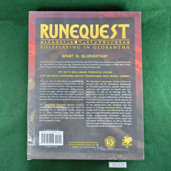 This set of core products for RuneQuest: Roleplaying in Glorantha contains everything gamemasters and players need for incredible adventures in the world of Glorantha.