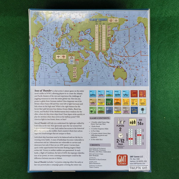 Seas of Thunder not only allows players to re-create the Atlantic or Pacific theaters of the war but to see how challenging the entire picture was for their leaders. How do you protect a globe from German raiders? How desperate was it for Britain when France fell and they were left to fight Germany and Italy alone on the high seas? What is the right balance for the Soviet fleet split between four distinct fronts (Baltic, Black Sea, Arctic, and Pacific)? If the Mediterranean force weakens for the allies, from where do they draw ships? Does Japan strike quickly or play for attrition when they arrive on the halfway point? Will America fight in two fronts, three, or four?