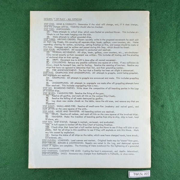 "The original basis for Wooden Ships and Iron Men first published by Battleline and later Avalon Hill. The version of this ruleset was developed in 1976 and is basically an early draft of the WSIM ruleset but played with miniatures.