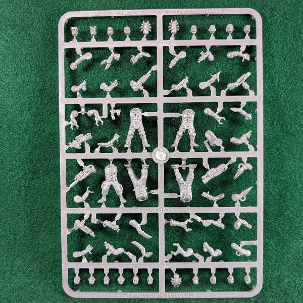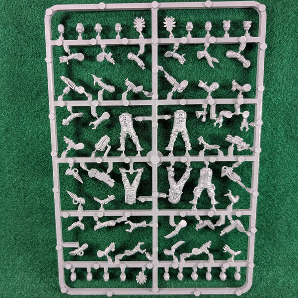 This sprue offers enough parts to build 5 cyborg monstrosities for Stargrave that can be used to menace independent crews. These parts can also be combined with components from other Stargrave sets to create characters with cybernetic implants or to add even more variety to an automaton horde.
