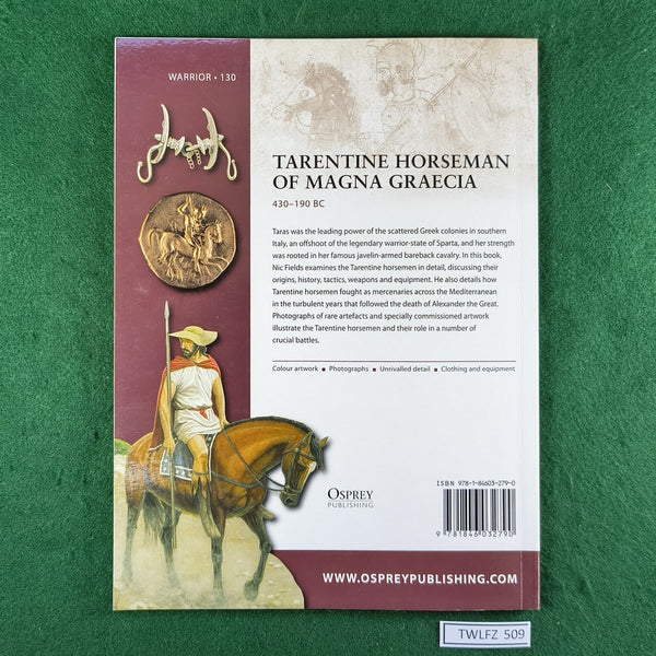 Taras was the leading power of the scattered Greek states of southern Italy and built their reputation on the unmatched horse warriors who helped the Tarentines claim and maintain their power. In this book, expert author Nic Fields examines the Tarentine horsemen in detail, discussing their tactics, weapons and equipment and detailing how they operated as mercenaries throughout the region. With a wealth of contemporary sources and rare artefacts, illustrated with specially commissioned colour artwork and photographs of artefacts, this is an intriguing insight into the everyday lives of these horsemen, revealing how they acquired the skills that enabled them to dominate the region.