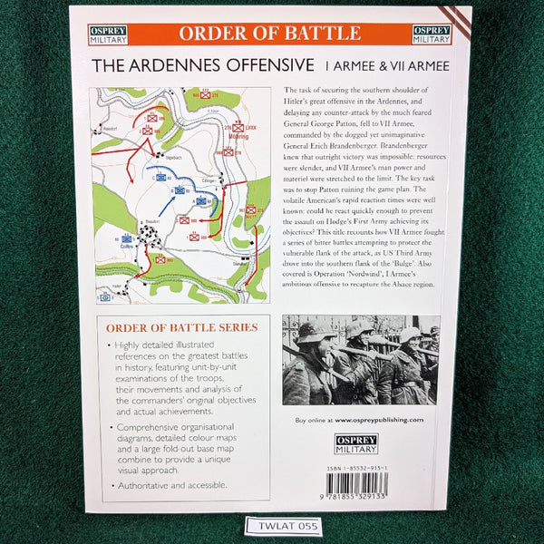 The task of securing the southern shoulder of Hitler's great offensive in the Ardennes, and delaying any counter-attack by the much-feared General George Patton, fell to VII Army, commanded by the dogged yet unimaginative General Erich Brandenberger. Brandenburger knew that outright victory was impossible: resources were slender, and VII Army's manpower and materiel were stretched to the limit. The key task was to stop Patton ruining the game plan. The volatile American's rapid reaction times were well known: could he react quickly enough to prevent the assault on Hodge's First Army achieving its objectives? This title recounts how VII Army fought a series of bitter battles attempting to protect the vulnerable flank of the attack, as US Third Army drove into the southern flank of the 'Bulge'. Also covered is Operation 'Nordwind', I Army's ambitious offensive to recapture the Alsace region.