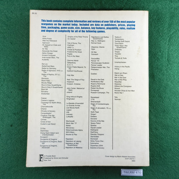 Complete information and reviews of over 150 of the most popular wargames on the market today (1980). Dungeons and Dragons, Air Assault on Crete and Malta, Blue & Gray QuadriGame, Fall of Rome, Gettysburg, Melee, Sniper, Space Patrol, and many others.