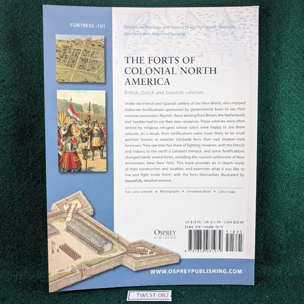 It begins with a study of the forts built by colonists on Roanoke Island between 1585 and 1590, and the famous settlements in Jamestown (Virginia) from 1607. It moves on to cover the British settlements that followed in New England, Nova Scotia and other points on the North American coast, as well as the Dutch fortified settlements in what are now the states of New York, Connecticut and New Jersey, and the Swedish forts in Delaware between 1638 and 1655.