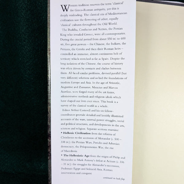 This companion to the editor's "Penguin Encyclopedia of Ancient Civilizations" goes beyond the misleading definition of "classical" civilization, which is traditionally reserved for Greco-Roman antiquity, and examines the five great civilizations which were at their height between 550BC and 600AD: the Chinese, the Indians, the Persians, the Greeks and their Roman heirs.