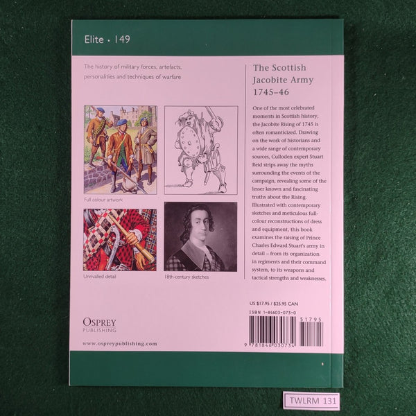 One of the most celebrated moments in Scottish history, the Jacobite Rising of 1745 is often romanticized. Drawing on the work of historians and a wide range of contemporary sources, Culloden expert Stuart Reid strips away the myths surrounding the events of the campaign, revealing some of the lesser known and fascinating truths about the Rising. Illustrated with contemporary sketches and meticulous full-colour reconstructions of dress and equipment, the raising of Prince Charles Edward Stuart's army is examined in detail - from its organization in regiments and their command system, to its weapons, tactical strengths and weaknesses.