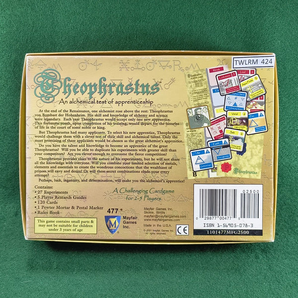 Theophrastus provides clues to the nature of his experiments, but he will not share all the knowledge with everyone. Will you combine your limited selection of metals, elements and essentials to create the wondrous concoctions that the wealthiest of princes will envy and desire? Or will these secret combinations elude your every attempt?