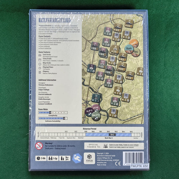 Traces of Hubris is a two-player game that simulates the German Case Blue (Fall Blau) summer offensive in southern Russia during the second half of 1942. The goal was to “cut off” the Volga at Stalingrad and to capture the Caucasus oil fields.