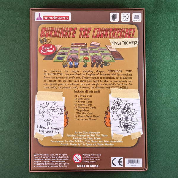 In Trogdor!: The Board Game, you and up to five friends — or maybe people you just paid to come over — take on the roles of these acolytes of the Burninator, each with their own unique abilities and magical items. Take turns guiding Trogdor on his destructive lost weekend around Peasantry. Help him avoid pesky knights and archers, devour peasants, burninate the countryside, and, of course, the thatched roof COTTAGES!!