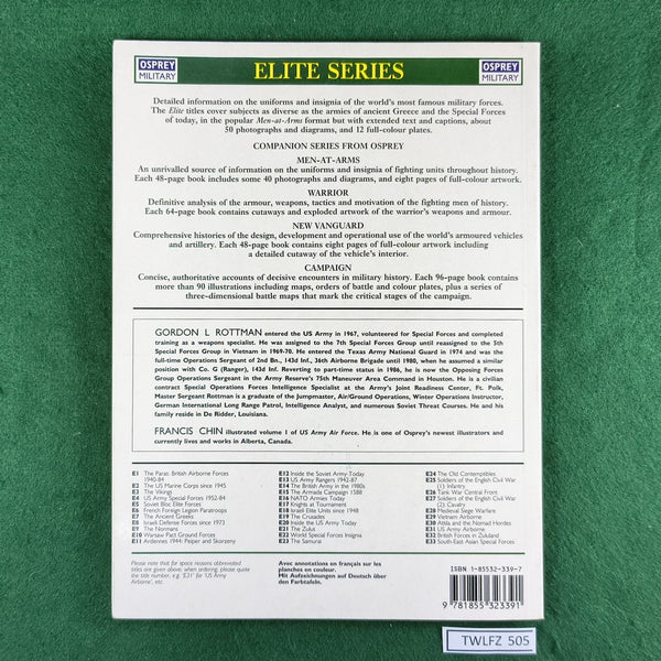 These general issue and specific uniforms are the subject of this volume by one of Osprey's most experienced authors, Gordon L. Rottman, whose detailed text is backed by plenty of contemporary photographs and 12 full page colour plates by Francis Chin.